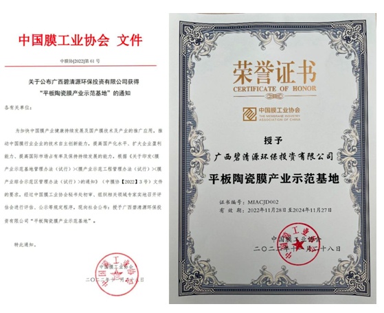 中国粉体网讯 近日,中国膜工业协会发布通知,授予碧清源公司“平板陶瓷膜产业示范基地”认证,为国内首例。