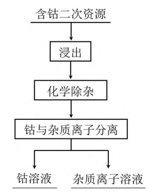 钴的二次资源种类繁多,化学成分复杂多变,近年来,我国研究工作者在含钴二次资源回收方面做了大量工作,提出了许多回收工艺流程。这些工艺流程以湿法工艺为主,一般包括浸出、化学预除杂、钴与其他金属离子分离等工艺过程。