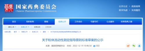 5、药典委:《粉体流动性测定指导原则标准草案》公开征求意见