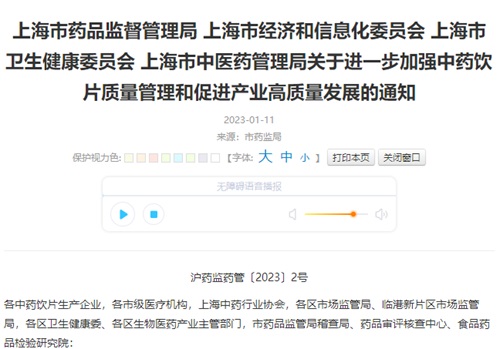 为推动上海市国家中医药综合改革示范区建设,促进中医药科技创新,持续推动产业升级转型,进一步落实相关政策要求,结合上海实际,现就加强中药饮片质量管理和促进产业高质量发展的有关要求,做了通知,内容如下