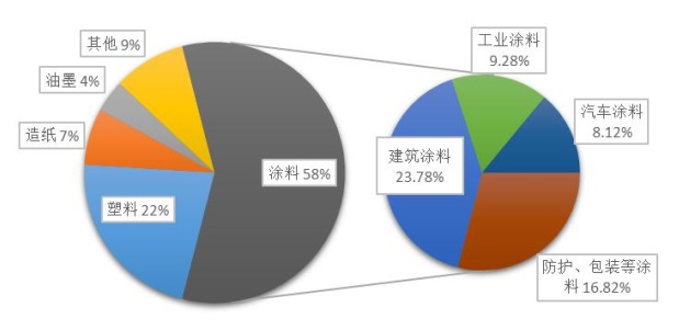 作为精细的无机化工产品,钛白粉广泛用在涂料、塑料、造纸、化纤、油墨、橡胶、食品、化妆品等领域,其应用领域既要满足材料性能的需要,又要满足光学性能带给人的视觉与应用需要。由于钛白粉在许多方面都与国家的经济有着密切的关系,因此被称为“经济发展的晴雨表”。随着科技的发展,钛白粉的消费逐渐拓展到新能源、高端装备、环保、医用等领域。