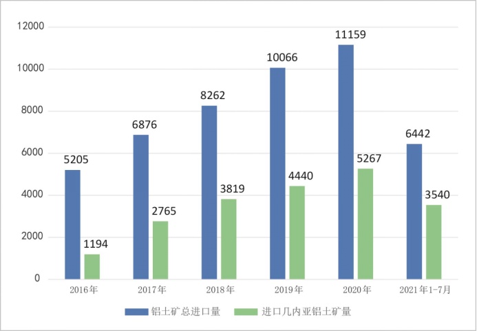 近几年几内亚成为我国第一大铝土矿进口国(万吨)