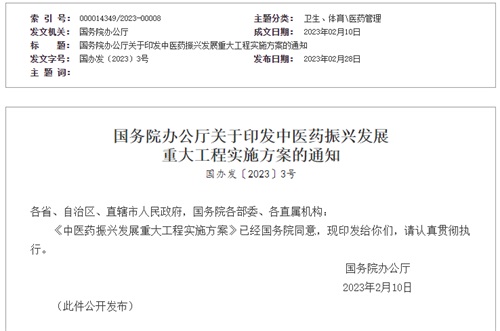 中国粉体网讯 2月28日,中医药振兴再发高层文件。国务院办公厅发布《关于印发中医药振兴发展重大工程实施方案》(下称《实施方案》)的通知,从医疗、医保、医药端继续推动中医药振兴发展。