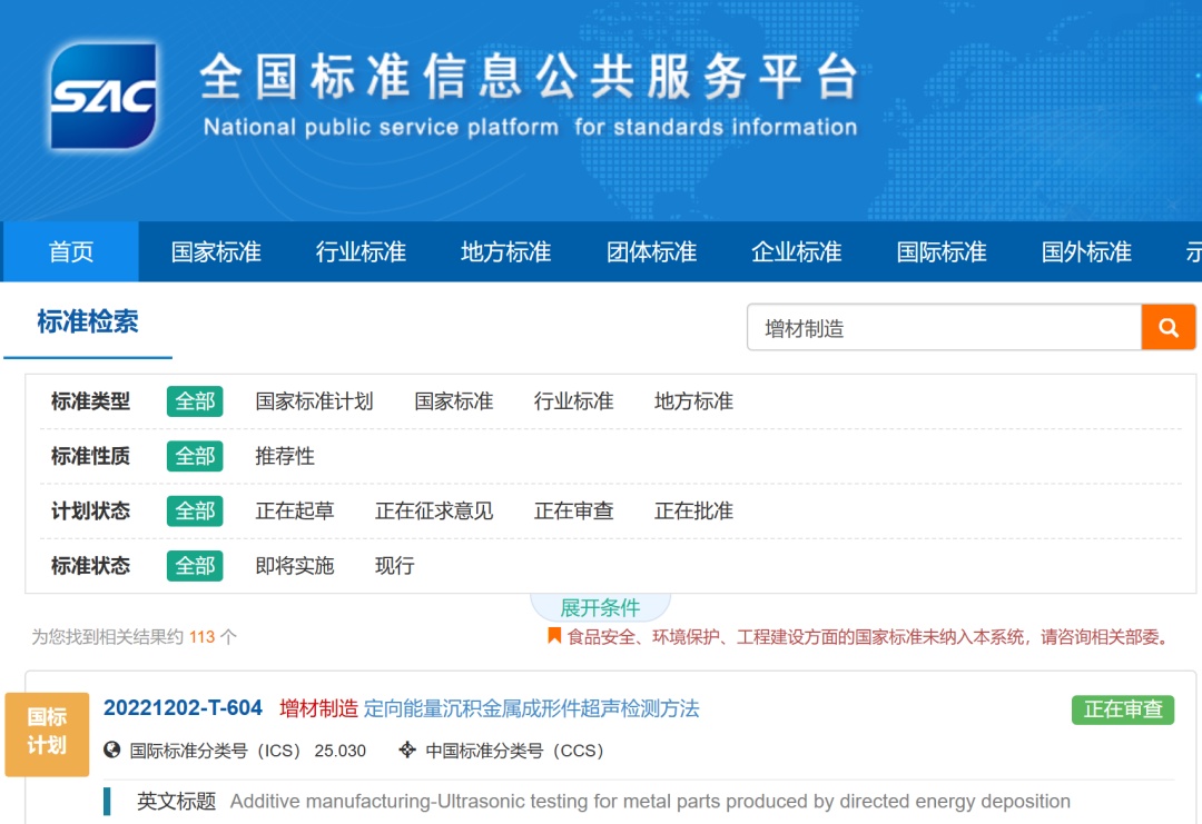 据统计,依据全国标准信息公共服务平台上的检索信息,与“增材制造”相关的标准共计113项,这其中依照标准类型可分为:国家标准、国家标准计划、行业标准和地方标准四大类。以下是南极熊依照时间顺序(2011年-至今)统计的113项相关增材制造标准信息,感兴趣的朋友可到全国标准信息公共服务平台上(首页 - 全国标准信息公共服务平台 (samr.gov.cn))检索增材制造了解更详细的内容:
