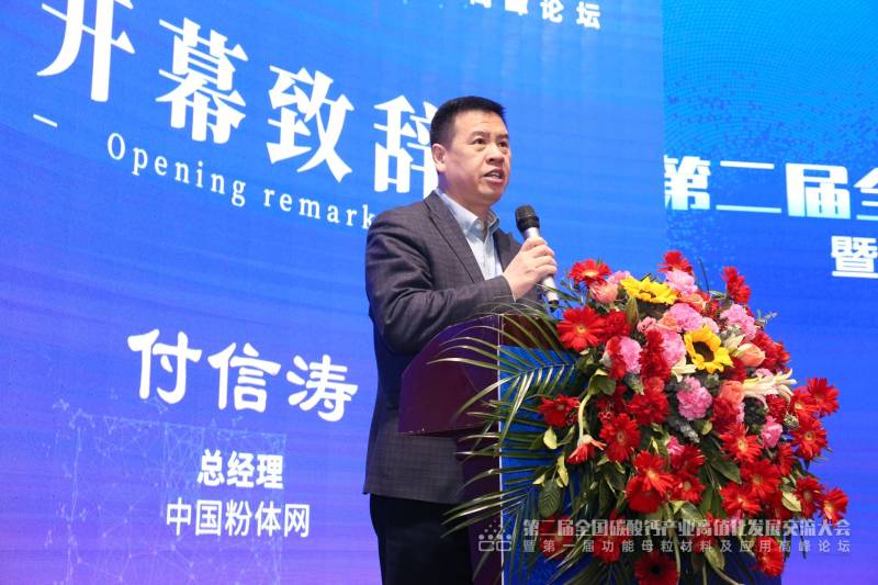 本次会议由中国粉体网会展事业部总经理孔德宇先生主持开幕式,中国粉体网总经理付信涛先生致开幕辞。