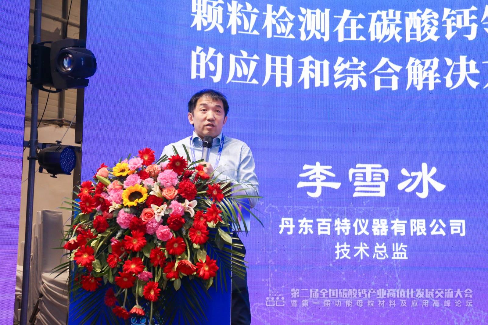 丹东百特仪器有限公司技术总监李雪冰博士作《颗粒检测在碳酸钙领域的应用和综合解决方案》报告