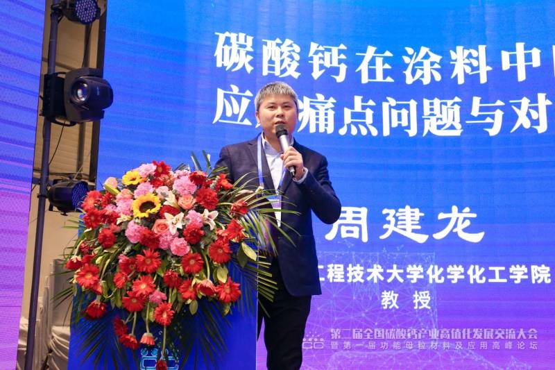上海工程技术大学化学化工学院周建龙教授作《碳酸钙在涂料中的应用痛点问题与对策》报告