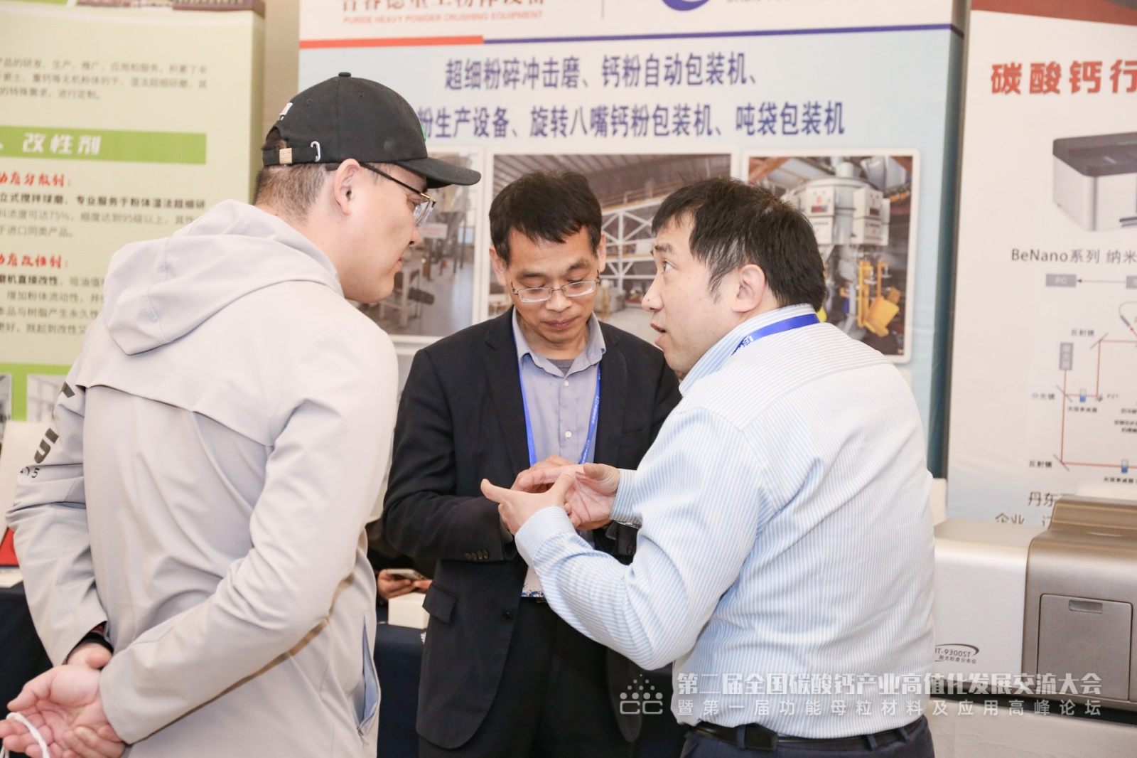本届大会现场,近50家碳酸钙上下游企业展示了各种先进设备,深加工钙粉,以及改性塑料、母粒、涂料、纸品、胶粘剂、补钙剂等产品,专家、学者和参会嘉宾面对面的深入交流。