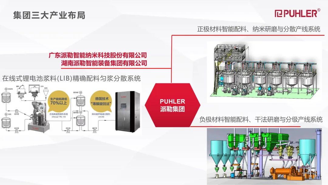 派勒作为“纳米研磨与分散的先行者”,拥有过去20年的行业经验历练和共性的制造工艺,在锂电领域,派勒可提供锂离子电池正负极材料自动配料、纳米研磨、气流粉碎的系统柔性生产线FMS;锂离子电池正负极浆料自动配料、高效制浆、分散、真空脱泡的系统InNovaZ TRL等整线集成的咨询、研发、设计、制造、销售、调试安装及配套售后服务的整体解决方案,是我国第一家同时向正负极材料企业提供成套研磨分散生产线的企业。