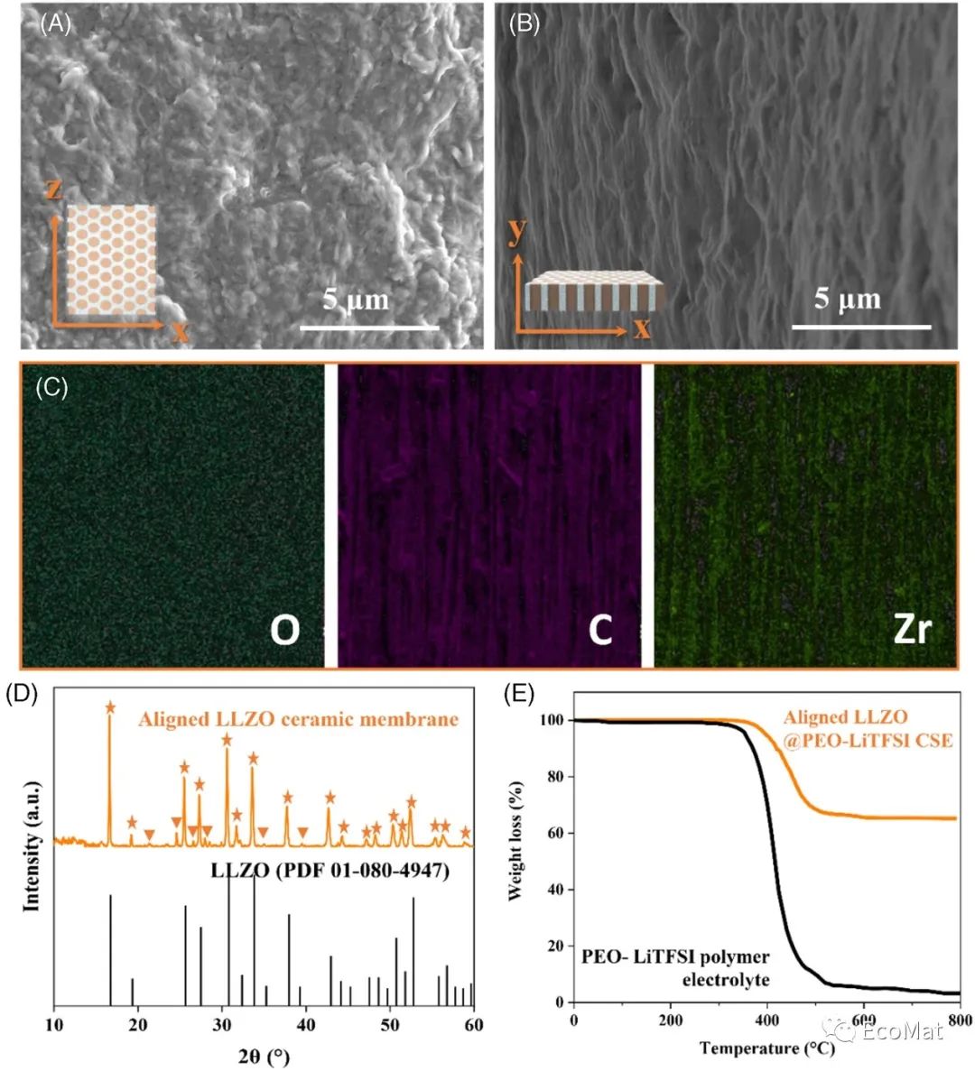图3多尺度定向排列的LLZO@PEO-LiTFSI复合固态电解质(CSE)