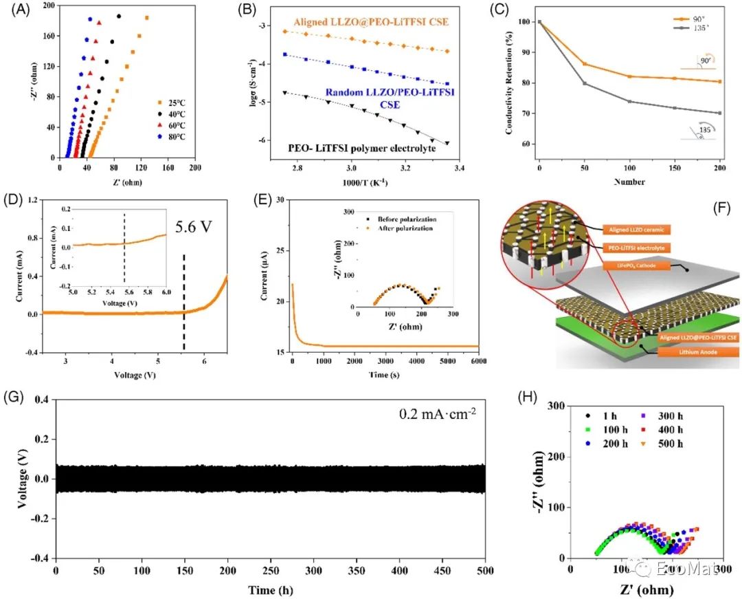 图4多尺度垂直定向LLZO@PEO-LiTFSI复合固态电解质在25°C下的电化学性能