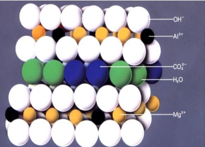 复合金属氢氧化物(Layered double hydroxides,简称LDHs),俗称为水滑石,是一种典型的二维层状阴离子性黏土。水滑石有天然的水滑石矿和人工合成的类水滑石材料。