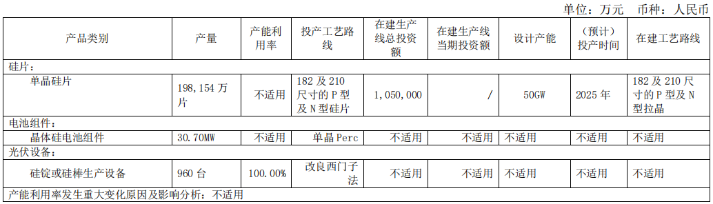 公司规划至2023年底,单晶硅片年产能达到190GW,并计划实现单晶硅片出货量目标130GW(含自用)。