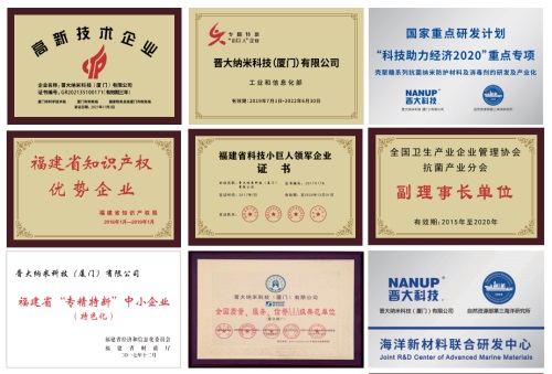 晋大纳米科技(厦门)有限公司集抗菌材料研发、生产、销售于一体,是国内纳米科技应用领军企业,先后获得“国家高新技术企业”、全国专精特新“小巨人”企业、“中国经济最具发展潜力企业”、“福建省科技小巨人领军企业”、“福建省知识产权优势企业”等荣誉称号。