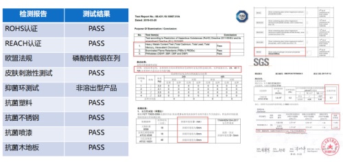经第三方权威机构检测,内含晋大科技银离子抗菌剂的抗菌建材,具有广谱、长效抗菌性,对大肠杆菌、金黄色葡萄球菌、白色念珠菌等细菌抗菌率均大于99%,防霉等级达到0级,具有强抗抑细菌作用和防霉作用,也符合食品接触材料安全国家标准的相关要求。