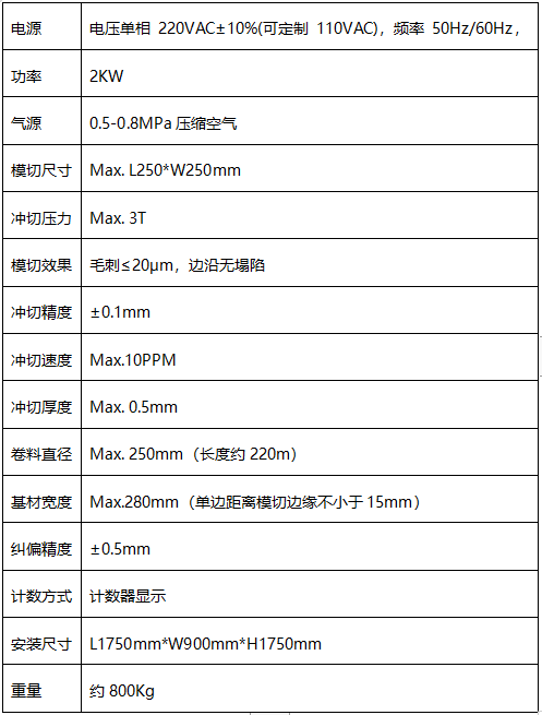 7、标配一套标准正、负极片刀模,刀模形状也可根据客户要求制作;