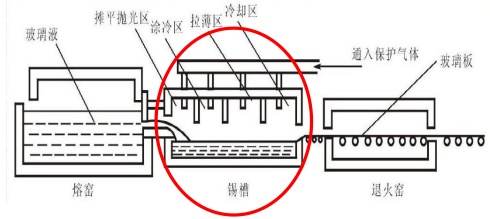 1、玻璃在锡液表面通过自重力和表面张力作用摊平成型