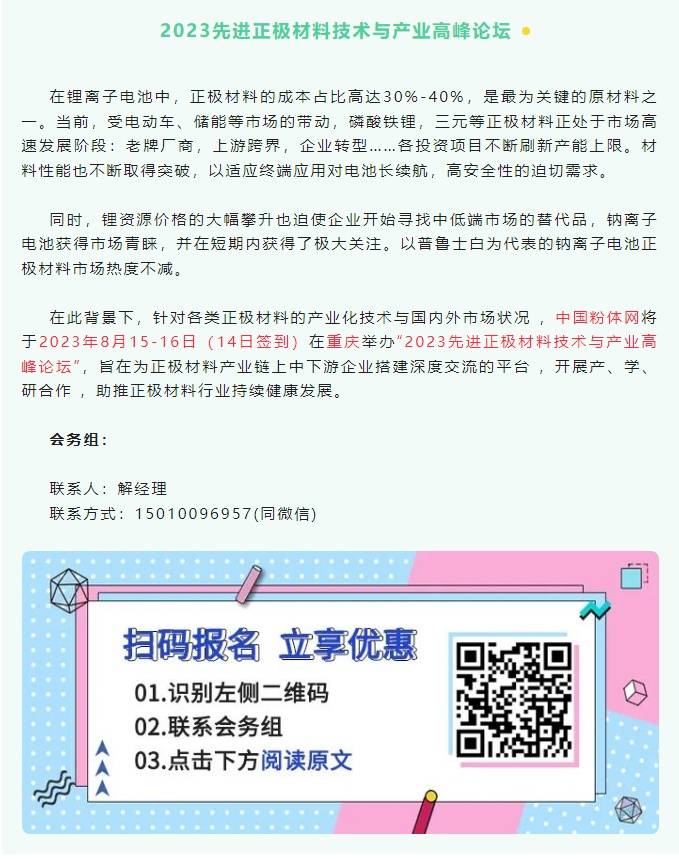从2023先进正极材料技术与产业高峰论坛暨第一届钠离子电池材料技术研讨会组委会获悉,本届会议将于2023年8月15-16日在重庆举办。北京新能源汽车股份有限公司邀请您共同出席。