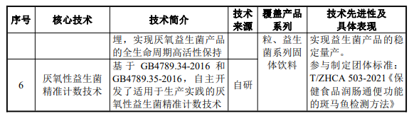 财通证券关于公司首次公开发行股票并在创业板上市的上市保荐书中提到,产品多维元素片(21)和维生素与矿物质补充剂系列保健食品,均为复杂复方组分制剂产品,系基于相同的核心技术体系;公司益生菌颗粒与益生菌系列固体饮料,均为高活性益生菌类产品,系基于相同的核心技术体系,具体情况如下:
