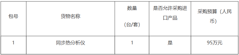 项目名称:中国科学院新疆理化技术研究所同步热分析仪采购项目