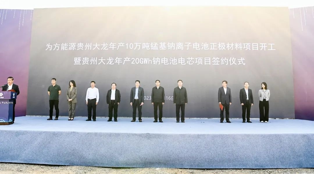 中国粉体网讯 10月16日,为方能源贵州大龙年产10万吨锰基钠离子电池正极材料项目开工暨贵州大龙年产20GWh钠电池电芯项目签约仪式举行。