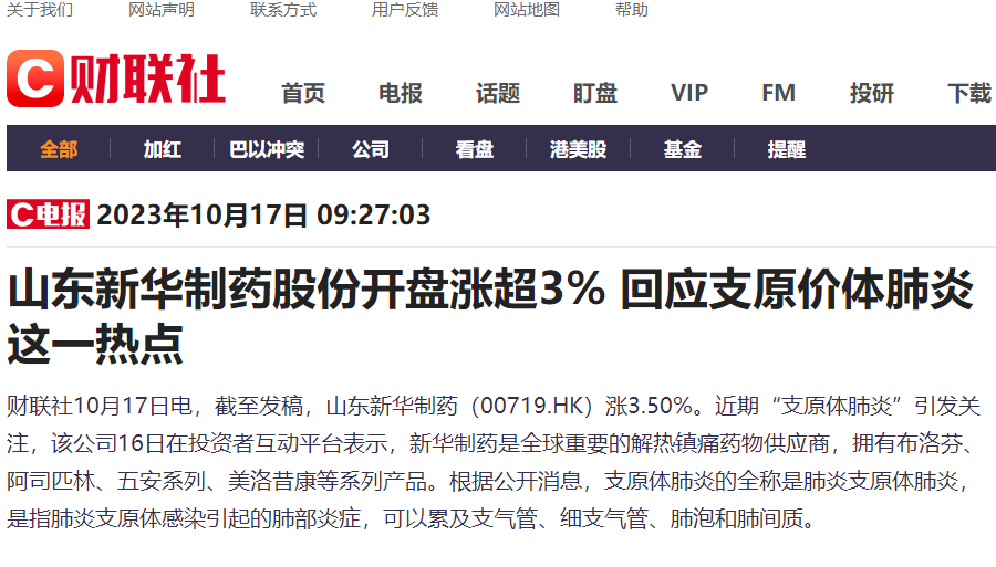 财联社:山东新华制药股份开盘涨超3% 回应支原价体肺炎这一热点