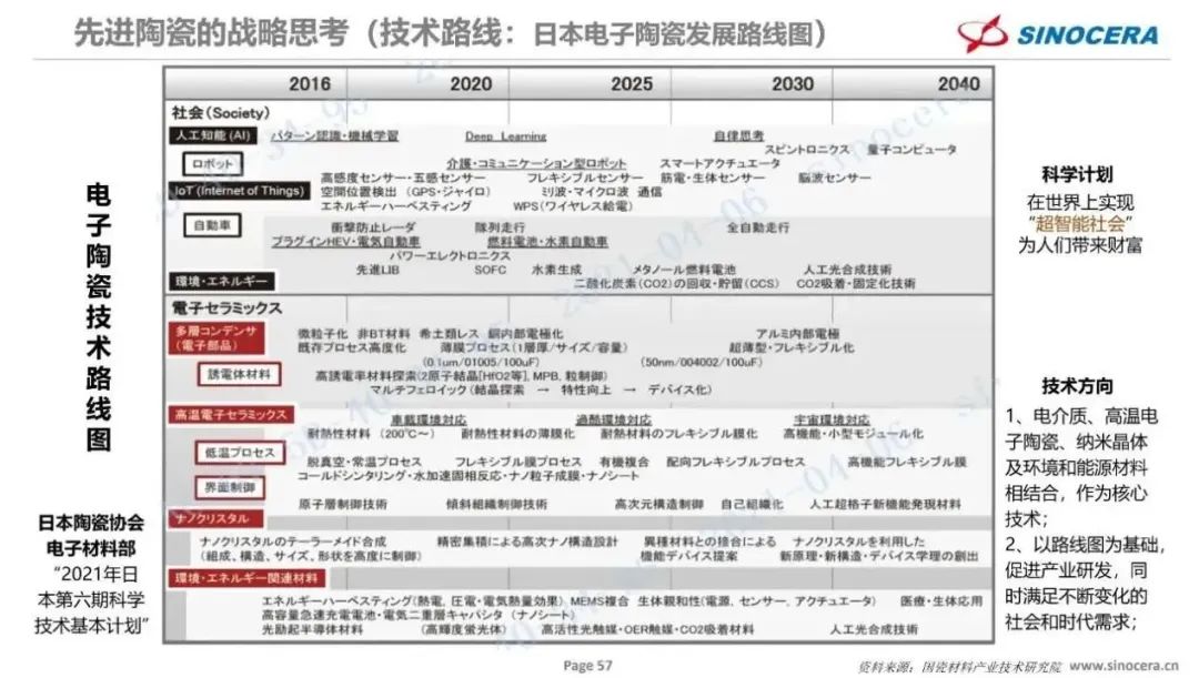 以日本陶瓷协会电子材料部发布的日本电子陶瓷发展路线图来看,其可以精准的将未来电子陶瓷的科学计划和技术方向布局到未来25年。