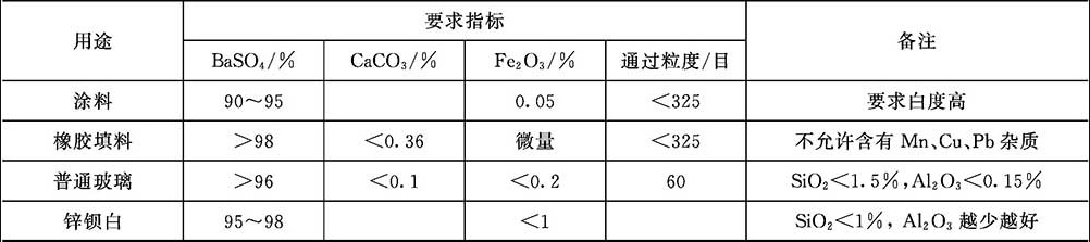 涂料、橡胶填料、普通玻璃、锌钡白生产用重晶石粉/硫酸钡的质量要求