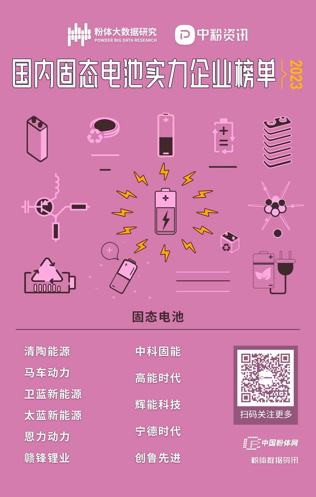 时下,锂电产业进入新一轮的技术迭代期,全固态电池因能彻底解决安全性差、能量密度低等问题,电池企业等纷纷发力。目前国内固态电池研发进展相对较快、实力较强的企业有:清陶能源、马车动力、卫蓝新能源、太蓝新能源、恩力动力、赣锋锂业、中科固能、高能时代、辉能科技、宁德时代、创鲁先进等(排名不分先后)。