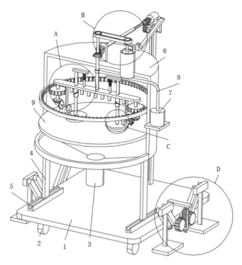 摘要:本实用新型通过电机、转杆、第一皮带轮,第二皮带轮、转轮和转动机构,通过电机的旋转可使得转杆带动第一皮带轮进行转动,同时通过电机的转动带动多组被动齿轮进行转动,通过被动齿轮的转动。