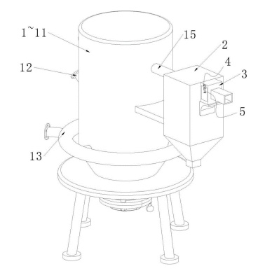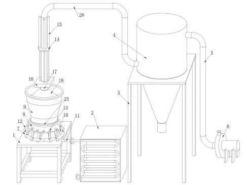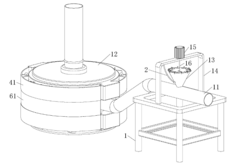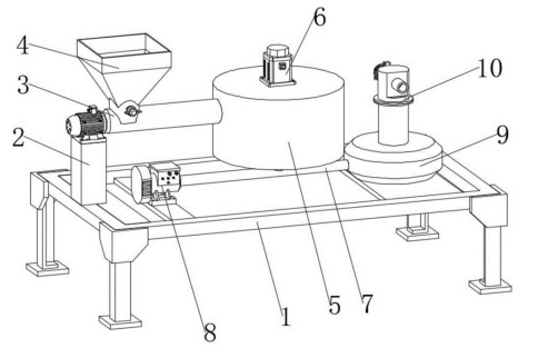 摘要:通过螺旋扇叶对进料斗内部的物料进行搅动和输送,使进料斗内部的物料能够快速顺利的通过进料斗进入到输料管内部,然后被输料管内部的气流带动进入至粉碎腔内粉碎,减少物料过多堆积在进料斗内部,导致进料斗出口被堵住物料难以进行粉碎的问题,提高了粉碎的稳定性。