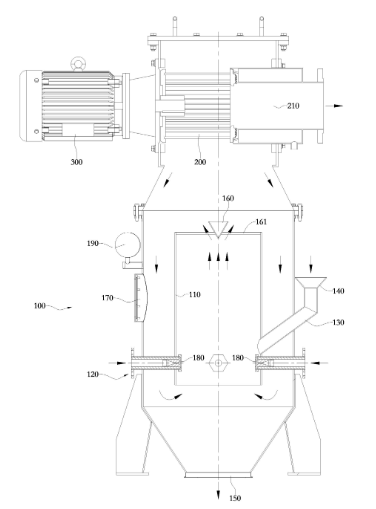 摘要:本实用新型提供的流化床式气流粉碎机,包括:空压机、料仓、粉碎室、分级室、除尘室、收集器、除尘风机及用于连接各部件的管道,所述分级室位于所述料仓与所述粉碎室之间,所述料仓中的物料经所述分级室,粒度不符合要求的物料直接进入所述粉碎室进行粉碎,粉碎后的物料被上升气流输送回所述分级室,粒度符合要求的合格细粉与微细粉尘一起从所述管道进入所述除尘室,所述合格细粉在所述除尘室除尘后进入所述除尘室下方的所述收集器,微细粉尘在所述除尘室被收集,所述空压机射出的气流通过所述管道进入所述粉碎室和所述分级室,再从所述分级室流出通过所述管道进入所述除尘室,再从所述除尘室上方流出后经过所述除尘风机净化后排出。