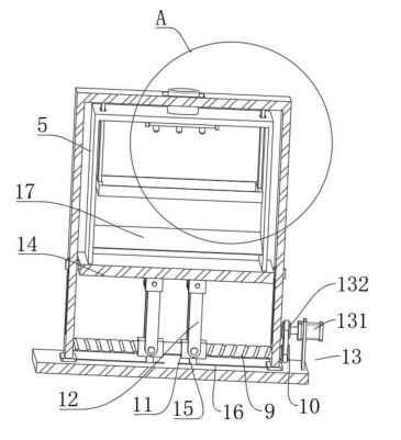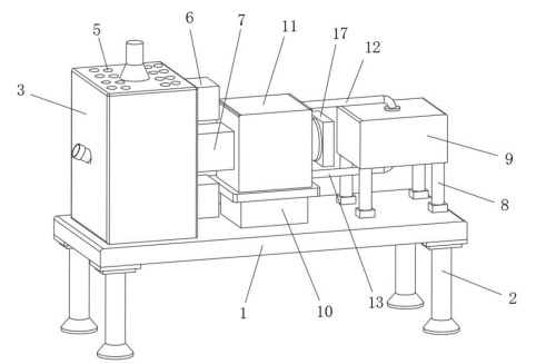 摘要:本实用新型中支撑架、矩形板、矩形框、粉碎箱、高压气泵、矩形箱、风管、双向螺纹杆、皮带轮一、活动块、连接杆和动力组件,可以对粉碎箱的内壁进行清刮,使得其内部不会残留粉剂,且有很好的回收价值,可以有效的减少粉剂的浪费,也让加工的成本降低,且解决了人工清理不便的问题,便于推广使用。