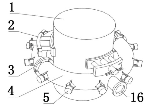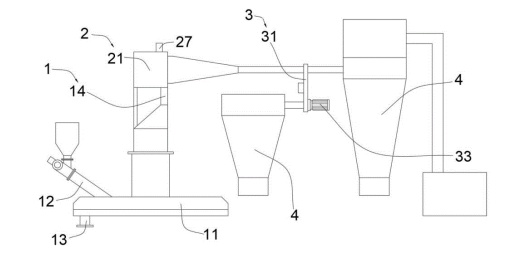 摘要:本申请的有益之处在于可将原料均匀分配分配成多份,进入到若干个文丘里管中,且若干个文丘里管采用呈环形阵列分布在圆盘型粉碎仓上方边沿处的设计,可为圆盘型粉碎仓内部四周均匀提供原料,避免原料送入位置单一不均的问题。