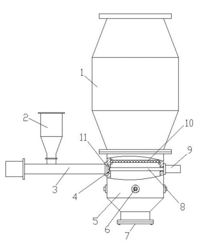 摘要:本发明主要用于解决物料进料速度过快,会造成物料堵塞,同时当物料相互堆积时,同样会导致物料在送料管内堆积,影响下料。