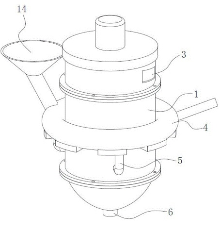 摘要:本实用新型中,通过设置两个半环形引流管,并通过法兰盘将两个半环形引流管连接起来,使得将两个法兰盘拆离后,可以将半环形引流管从气流粉碎机外壳的两侧取下,而不需要拆解气流粉碎机外壳上下两端的气体结构,便于拆卸。