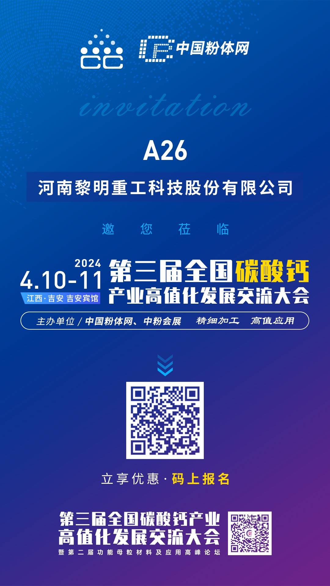 由中国粉体网主办的“2024第三届全国碳酸钙交流会”将于2024年4月10-11号在江西吉安举办,黎明重工邀您一同参加。