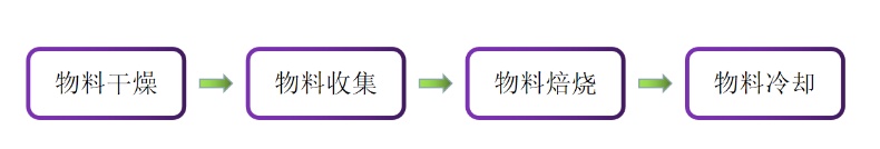1、物料干燥:生产物料由输送机送入到原料仓中并由螺旋给料机将物料送入文丘里与高温烟气充分混合,进入高效物料分离器中分离后,物料与二级预热器出口的热烟气进行混合干燥,然后物料进入到一级预热器中,分离的物料与焙烧分离器出口处的热烟气充分混合干燥,再进入到二级预热器中,完成物料干燥过程。