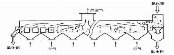 由焙烧炉出来的热物料需要冷却,以回收热量,较好的方式是采用空气对流化床操作,空气温度提高后可用作焙烧炉的助燃风。