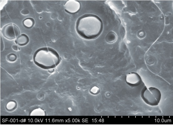 (2)颗粒粒径过大或球形化程度差,会造成流延后膜内的孔隙变大,导致透气膜透水,严重时可能会产生断膜。况且颗粒过大将会影响自身性能。