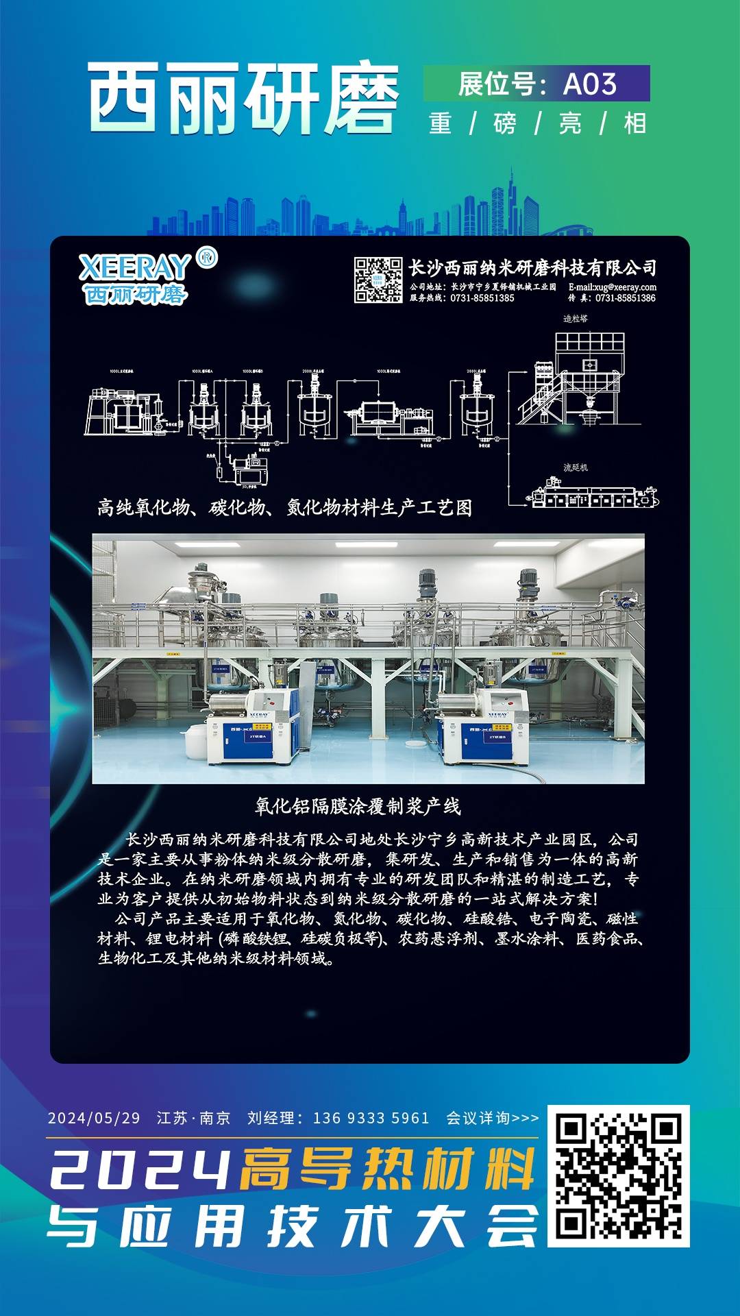 2024高导热材料与应用技术交流大会将于2024年5月29日在南京举办。长沙西丽纳米研磨科技有限公司作为参展单位邀请您共同出席。