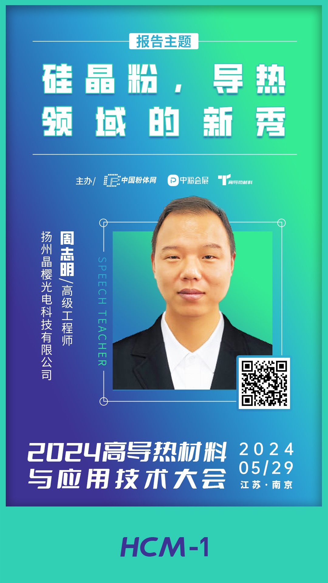 5月29日,中国粉体网将在南京举办2024高导热材料与应用技术大会,组委会有幸邀请到扬州晶樱光电科技有限公司的周志明高级工程师将现场分享题为《硅晶粉,导热领域的新秀》的报告,届时,周工将从硅晶粉的概念、特性以及在导热领域的应用案例等方面对硅晶粉展开详细介绍。