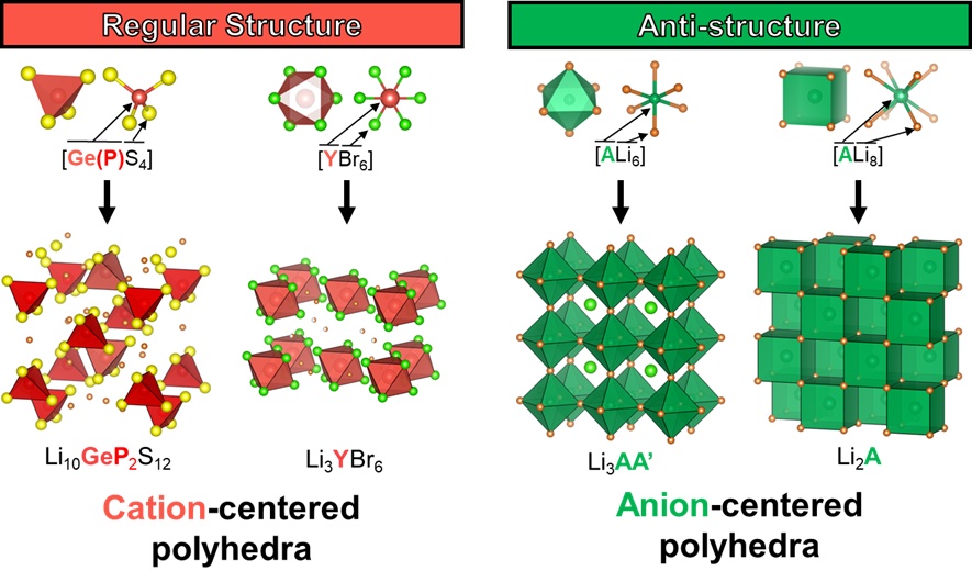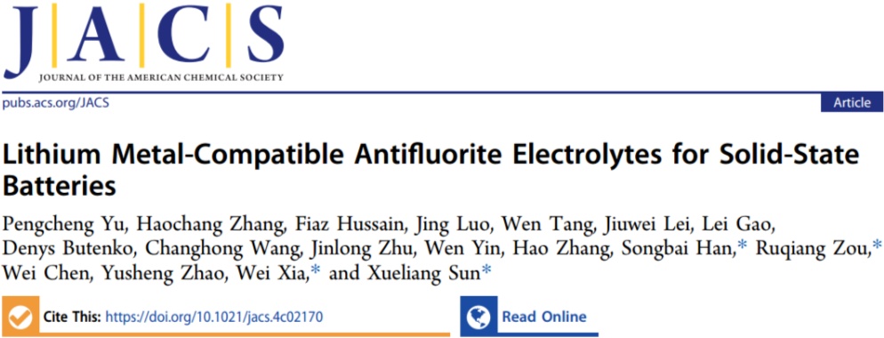 近日,宁波东方理工大学(暂名)孙学良院士和夏威团队提出了一种具有反式结构(与传统无机结构相比)的新型固体电解质设计,以实现对锂金属负极的本征热力学稳定。研究人员设计并合成了反萤石固体电解质,它在室温下具有2.1 × 10-4 S cm-1的高离子电导率和三维快速锂离子传输路径,并在锂-锂对称电池中表现出高度稳定性。研究还展示了锂金属负极和钴酸锂正极的可逆全电池,显示了反萤石作为锂金属兼容固体电解质在高能量密度固态电池中的潜力。该成果以Lithium Metal-Compatible Antifluorite Electrolytes for Solid-State Batteries为题发表在国际期刊《J. Am. Chem. Soc.》,第一作者是宁波东方理工大学(暂名)余鹏程博士,合作者包括北京大学邹如强和南方科技大学韩松柏团队。