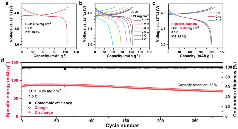 图6. 使用Li2.5N0.5S0.5固体电解质的全固态锂金属电池的电化学性能。