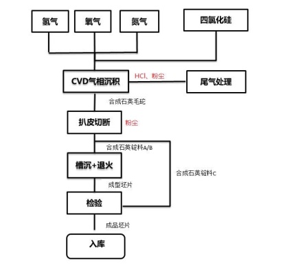 合成高纯石英生产工艺流程及产物节点图