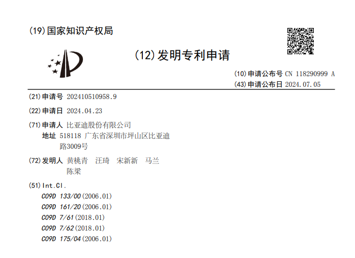 中国粉体网讯 近日,比亚迪申请一项名为“一种涂料及其制备方法、涂层、电子器件”,公布118290999A。该申请提供了一种石墨烯复合涂料及其制备方法。