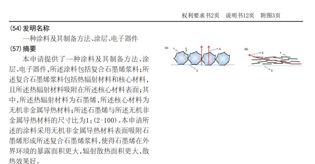 但现有研究中,石墨烯分散不佳,石墨烯涂料的散热性能有待提升。此外,目前使用的石墨烯涂料大多为有机溶剂型,使用过程中容易对环境及人体造成严重的伤害。