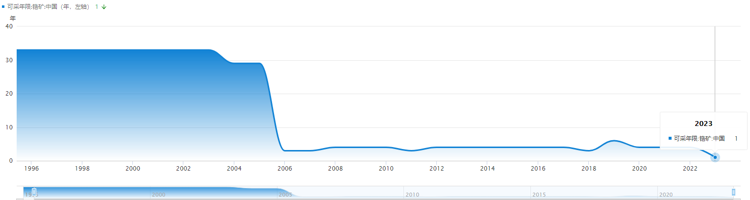 中国锆矿可采年限仅1年