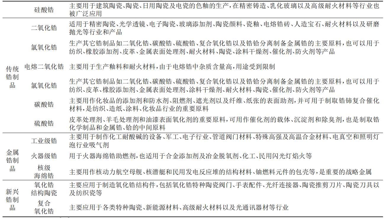 锆金属和锆矿物以其耐高温、抗腐蚀、易加工、性能好的特点广泛应用于现代陶瓷、特种玻璃、原子能工业等战略性新兴产业,以及化工、精密铸造和医疗等各个产业领域。锆与锆产品作为新兴产业中的一员,被冠以“二十一世纪最具潜力的产品”及“原子能时代第一号金属”的美称。