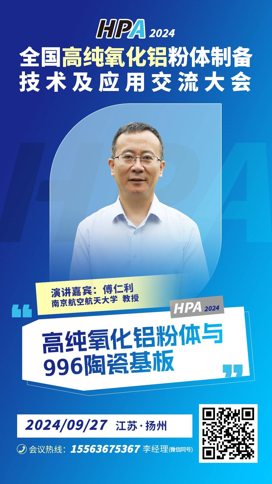 9月27日,中国粉体网将在江苏·扬州举办2024全国高纯氧化铝粉体制备技术及应用交流大会。鉴于高纯超细氧化铝粉体是解决现有陶瓷基板烧结成型装备制备996陶瓷的关键技术,我们邀请到了南京航空航天大学傅仁利教授现场作《高纯氧化铝粉体与996陶瓷基板》报告,届时,傅仁利教授将详细阐述高纯氧化铝陶瓷粉体与996陶瓷基板烧结性能之间的研究进展。